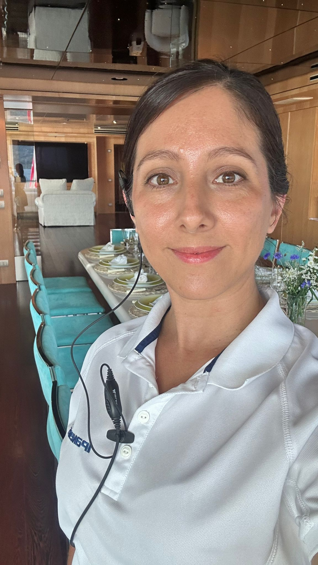 Azafata en un megayate de 140m
