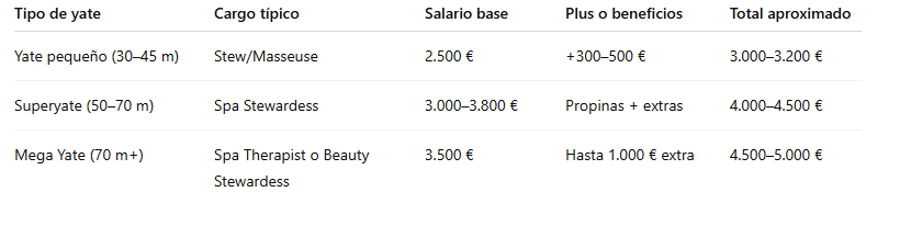 Sueldo de una masajista o esteticien en un yate de lujo