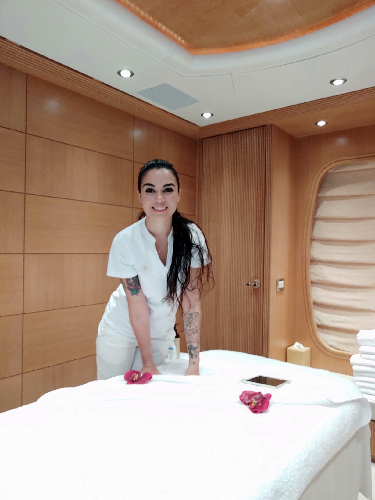 Yo como Jefa de Azafatas, me he visto en ocasiones que estando en Grecia o en otras partes recónditas del mundo, una de mis Invitadas a bordo, se despierta con ganas de un masaje y me ha tocado dejarme la piel para encontrar una masajista PARA YA.